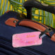Rosa und farbenfrohe Sterne und funkelnde Wirkung auf ein Hochzeitsgepäck. Readen: Bride