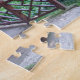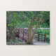 Eine kleine gewölbte hölzerne Brücke, die einen vorbei kleinen See in den formalen Gärten des Gouverneur-Palastes in historischem Williamsburg, Virginia kreuzt.