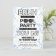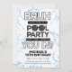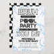 Plongez dans le plaisir avec notre "Bruh Pool Party" Invitation d'anniversaire! Cette conception est bordée de éclaboussures d'eau. Les fontes audacieuses et en détresse sont complétées par une paire de lunettes de soleil pour cette ambiance chill-out ultime. Le fond de l'invitation est orné d'un motif à damiers noir et blanc frappant. Une façon branchée et élégante d'appeler tous les BRUHS pour faire un brin et passer un moment inoubliable ! Pizza / gâteau / baignade - vous dedans? Commençons la fête !