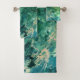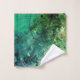 Une composition abstraite dynamique présente un ensemble de formes tourbillonnantes et de motifs dans différentes nuances de vert, noir et bleu