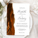 Le bord gauche de cette élégante faire-part de mariage moderne est orné d'une bordure d'aquarelle orange brûlée, recouverte d'une parties scintillant en faux or. Le texte personnalisable combine écriture manuscrite grise au fusain, cuivre et polices italiques sur un arrière - plan blanc. L'envers est assorti d'une agate orange brûlée et dorée.