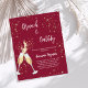 Ein modernes, stilvolles und glamouröses Brautparty für einen Bubbly Brunch. Ein bordeauxfarbener Hintergrund mit Blasen, ein Paar Flöten, Gläser. Der Name ist mit einem modernen handgeschriebenen Stilskript geschrieben. Personalisieren Sie Ihre Party-Daten und fügen Sie sie hinzu. 1 Blatt = 1 Einladung mit Druckkante bis Kante.