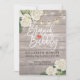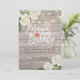 Brautparty / Hochzeitsfeier Einladungskarte Vorlagen - Elegante weiße Wasserfarbe Hydrangea Blume und String Lights auf rustikalem Holzhintergrund. Ein perfektes Design für Ihren großen Tag! Alle Textstile, Farben, Größen können an Ihre Bedürfnisse angepasst werden.