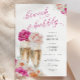 Une invitation à la douche nuptiale rose vif avec un script personnalisé "brunch et bulle" présente deux flûtes de champagne pétillantes et des fleurs d'aquarelle rose. Choisissez parmi nos options de couleur et vérifiez les autres produits correspondants.