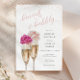 Cette élégante invitation à la douche nuptiale avec des détails de parties scintillant rosegold et un script "brunch et bulle" personnalisé comprend deux flûtes de champagne pétillantes et des fleurs d'aquarelle rose sur le dessus.