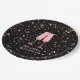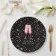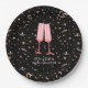 Zwei rosa Glasflöten auf schwarzem Hintergrund mit rosa und goldfarbenen Konfetti, diese Teller sind perfekt für ein Brautparty Brunch und Blubbly Thema. PASSENDE Artikel in unserer Sammlung.