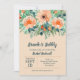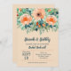 Elegantes Aquarell von Blume in Pfirsichtönen bis Orangen getrimmt mit aquamarinen bis jade grünen Blättern mit Ihrem Brautparty, Paare Duschen Details in schicken aquamarinen Schriften auf einem pfirsichfarbenen Hintergrund. **TIPP: Klicken Sie auf ANKOMIZE weiter, um Informationen hinzuzufügen, zu löschen, zu verschieben und auszurichten, um die Schriftart, die Schriftart- und Hintergrundfarbe zu ändern. PASSENDE Artikel in unserem Geschäft.