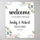 Das Poster mit üppiger botanischer Vegetation und eukalyptus-Blätter in Aquarelltönen heißt Sie herzlich willkommen und heißt Sie herzlich willkommen. Das Poster heißt "Herzlich willkommen zu uns, immer danach", Ihr Name und Ihr Hochzeitstag in einer schicken Kalligraphie.