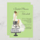 Commencez votre évènement tout de suite avec notre invitation branchée à la douche de mariée avec une mariée brunette assise sur un gâteau mariage damassé de 23 degrés. customisez simplement notre invitation avec vos informations mariages et vous êtes tous prêts à partir. ©Jessica Weible