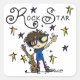 Der kleine Rockstar wird dieses Design mit einem braunen Rockstar mit Gitarre, umgeben von blauen und gelben Sternen und coolem Text, der Rock Star lautet, Liebe geben! Rock Star T - Shirt, Tasse, Taschen, Decken, Buben, Karten, Aufkleber, Schlüsselketten, Keepsakes und vieles mehr.