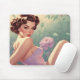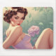 Die Abbildung Brünette Button-Up Pastel Blume zeigt eine brünette Frau in einer klassischen Button-up Pose, die sich mit einem Bein gebogen und ihren Körper leicht gedreht. Ihre Haare sind in Vintagen, voluminösen Vorhangstoffen gestylt und umrahmen ihre Schultern. Sie trägt ein straffes, blassrosa Kleid, das die weiche, weibliche Ästhetik des Stückes ergänzt. Im Hintergrund ist ein üppiger Garten mit pastellfarbenen Blume, vorwiegend in Rosa und lila, mit zarten grünen Blätter. Die Blume, die an die Pioniere erinnern, schaffen einen traumhaften, romantischen Rahmen, und die warme, sanfte Beleuchtung verleiht dem Vintagen Charme der Kunstwerke einen besonderen Reiz.