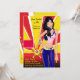 Ein auffälliges Teenagerdesign mit angesagten brünetten Jeans und einem gesteckten Hintergrund aus rot, gelb und weiß gestreiften Streifen mit Sternbetonung. Ideal für jugendliche Mädchen jeden Alters.Die Einladung ist leicht anzupassen mit Ihrem Wortlaut, Schriftart, Schriftart Farbe und Auswahl von sechs Papiertypen.