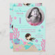 Kleine Jungfrau zum ersten Geburtstag Einladungskarte mit Unterwasserkreaturen.