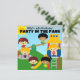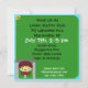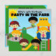 Brünettes Junge Party in der Park Geburtstagseinladungen, die Sie leicht anpassen können mit dem Namen Ihres Kindes und Geburtstagsfeier vor der Bestellung. Hier spielen mehrere Kinder auf der Rutsche im Park, fröhlich gehen, wanken, und ein brünetter Junge auf der Rückseite der Einladung!