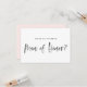 Frag Freunden und Familie, mit dieser femininen und modernen "Werden Sie mein Mann der Ehre?"-Karte zu deiner Hochzeitsfeier beizutragen. Es zeichnet sich durch eine dunkle Holzkohle-Wasserpinsel aus und ist mit einem rosafarbenen Rücken in Rosa verziert. Personalisieren Sie die Daten anhand des Namens und der Nachricht des Empfängers.