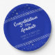 Feiern Sie den Absolventen mit diesen personalisierten Party-Tellern. Die königsblaue Hintergrundfarbe kann in die Schulfarbe oder in eine Farbe geändert werden, um sie mit dem Thema der Abschlussfeier abzustimmen, indem Sie auf den Reiter "Klicken Sie, um weitere Einstellungen vorzunehmen" klicken. Auch der Textstil/Schriftart/Farbe/Größe/Platzierung kann geändert werden. Kontaktieren Sie den Designer, wenn Sie das Design modifiziert oder auf einem anderen Produkt möchten, um Ihr Ensemble für Graduiertengruppen zu vervollständigen.