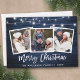Rustic Blue Wood Brush Script 3 Foto Family Frohe Weihnachtskarte mit String Lights