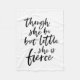 Stilvolle literarische Decke mit schwarzem Pinselskript des Zitats "obwohl sie nur wenig ist sie erbittert" aus A Midsommer Night's Dream von William Shakespeare vor einem weißen Hintergrund. *Bitte beachten Sie, dass das Zazzle-Wasserzeichen, das in der Zoomvorschau angezeigt wird, NICHT auf dem gedruckten Endprodukt erscheint. © Rosewood and Citrus