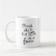 Weiße Tasse mit stylishen schwarzen Pinselskripten des Zitats "obwohl sie nur klein ist, ist sie heftig" von A Midsommer Night's Dream von William Shakespeare. *Bitte beachten Sie, dass das Zazzle-Wasserzeichen, das in der Zoomvorschau angezeigt wird, NICHT auf dem gedruckten Endprodukt erscheint. © Rosewood and Citrus