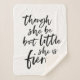 Stilvolle literarische Decke mit schwarzem Pinselskript des Zitats "obwohl sie nur wenig ist sie erbittert" aus A Midsommer Night's Dream von William Shakespeare vor einem weißen Hintergrund. *Bitte beachten Sie, dass das Zazzle-Wasserzeichen, das in der Zoomvorschau angezeigt wird, NICHT auf dem gedruckten Endprodukt erscheint. © Rosewood and Citrus