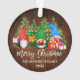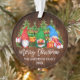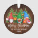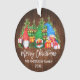 Brush Script Merry Christmas Colorful Fun Watercolor Gnomes Ornament with Pine Trees and String Lights. Rustic Country Wood.