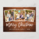 Rustikales Wood Brush Script 3 Foto Familie Frohe Weihnachtspostkarte