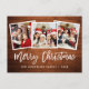 Rustikales Wood Brush Script 3 Foto Familie Frohe Weihnachtspostkarte