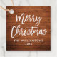 Brush Script Rustic Wood Christmas Square Geschenkanhänger
