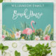 Moderne Pinselschrift, tropische Wasserfarbe, rosa Flamingo, Familienname Beach House Küchentücher