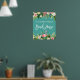 Modern Brush Script Tropical Floral Beach House Poster mit rosa Flamingo