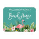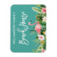 Modern Brush Script, Watercolor Tropical Floral Familienname Beach House Kühlschrank Magnet mit rosa Flamingo.