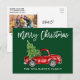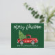 Modern Brush Script Wasserfarbe Vintager roter LKW mit Weihnachtsbaum - Frohe Weihnachtspostkarte mit Foto Rückseite - Forest Green