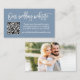 Modernes Pinselskript. Minimalistische Simple Wedding Website Enclosure Card mit Ihrem QR Code. Foto zurück. Dusty Blue