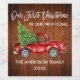 Modern Brush Script Unser erstes Weihnachten in unserem neuen Zuhause Holiday Wine Bottle Label beinhaltet Watercolor Vintag Red Truck mit Weihnachtsbaum - Rustikales Landholz