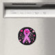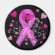 Ein rosa Band im Vintagen Stil mit den Botschaften von "Hoffnung, Mut, Liebe" und "Finde eine Heilung" und einem Schmetterling und Herz mit einem schönen blumigen Hintergrund. Lass uns Rosa tragen, um das Brustkrebsbewusstsein im Oktober zu unterstützen.