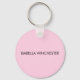 Brustkrebsbewusstsein Monat hellrosa schlichte Farbe moderne stilvolle mädchenhafte niedliche Text-Schlüsselanhänger. Während des Brustkrebs-Aufklärungsmonats im Oktober und während des ganzen Jahres tragen die Menschen rosa Bänder, um Überlebende zu ehren, sich an die durch die Krankheit verlorenen Menschen zu erinnern und um den Fortschritt zu unterstützen, den wir gemeinsam machen, um Brustkrebs zu besiegen.