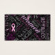 Teilen Sie eine wichtige Botschaft mit diesem eleganten Visitenkartendesign, das ein "Breast Cancer Awareness Word Cloud Design" enthält. Einige der enthaltenen Wörter sind: Hoffnung, Liebe, Glauben, Glaube, Mut, Bewusstsein, Schwester, Mutter, Tochter, Tante, Großmutter, Mächtig, Pink mit rosa Brustkrebs-Bewusstseinsbändern überall. Ideal für Sensibilisierungsveranstaltungen, Spaziergänge, wohltätige Zwecke und jede Gelegenheit, um auf diese Sache aufmerksam zu machen. Wählen Sie eine beliebige Hintergrundfarbe und passen Sie das Design an, indem Sie die Größe des Musters erhöhen oder reduzieren und mit den Pfeiltasten Text und Bänder verschieben, um Ihren Geschmack Anzug. Suchen Sie die ID261, um dieses Muster bei weiteren passenden Produkten zu sehen.