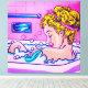 Sexy girl taking a bathtub. Work painted in the style of Roy Lichtenstein.