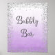 Plakatdruck für Bubbly Bar wedding Schild mit Imitate silber Glitzer-Design und ombre lila Aquarell Hintergrund.