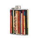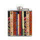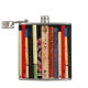 Diese angesagte Flasche kennzeichnet ein Regal der bunten Bücher. Sie bilden ein interessantes abstraktes vertikales geometrisches Muster in den Farben von Grünem, von Gelbem, von Rotem, von Blauem, von Schwarzem und von rosa.