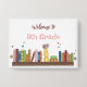 Eine weiße Button-Taste mit Aquarellbüchern auf einem Regal. Ideal, um Ihre jungen Schüler am ersten Schultag willkommen zu heißen. Auch in Schwarz und aquamarin erhältlich. © ArianeC Illustrations-Alle Rechte vorbehalten