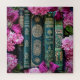 Dieses romantische Design besticht durch antike grüne Buchstäbchen und altmodische, rosafarbene Rose mit bordeauxfarbenen Clematis. Für diejenigen, die Liebe Bücher und Blume. Diese wunderschönen alten Vintagen grünen Bücher und Blume in Rosatönen werden sicher die Leute (Leser, Schriftsteller, Bibliophilen, Bibliothekare, Buchhändler, Buchsammler und Buchwürmer) zufrieden stellen.