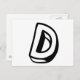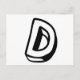 Die elegante Letter D Postcard - eine stilvolle und personalisierte Art, warme Wünsche zu vermitteln oder Ihrer Korrespondenz eine Touch der Eleganz hinzuzufügen. Diese Postkarte zeichnet sich durch einen wunderschön gestalteten Buchstaben D in einem geschmackvollen Schriftart aus, der ein optisch ansprechendes und anpassbares Design schafft. Machen Sie eine Aussage mit der Letter D Postcard - ein elegantes und anpassbares Accessoire, das Ihren Grüßen oder Ihrer Dekoration eine Touch von Eleganz verleiht. Bestellen Sie jetzt Ihre Nachrichten und Räume mit dieser wunderschön gestalteten Postkarte!