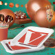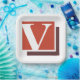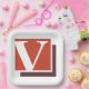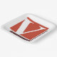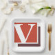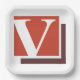 Weiße Buchstaben v auf rotem Hintergrund. Dieses Design wirkt auf diese Paper-Teller sehr effektiv