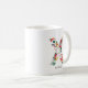 Whimsikale, festliche und elegante Blumenbriefe Tasse mit Blume in Rot, Grün, Gold und Grau. Personalisieren Sie diese durch Hinzufügen von Namen oder einer kurzen Wortgruppe. Andere Farben und Buchstaben sind verfügbar.