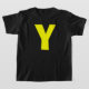 Großes Gelb Y auf einem dunklen T - Shirt für Kinder.