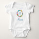 Bodysuit für Babyjungen, mit Monogramm mit dem Buchstaben M in Ozeanblau (im kursiven Schriftart Monterey) in einem Blumenrahmen und dem Namen Marcus darunter. Beachten Sie, dass Sie sowohl den Initial- als auch den Namen anpassen können. Ändern Sie zu dem, was Sie brauchen. Und Sie können auch die Farbe des Textes ändern.