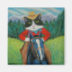 Tuxedo Katzenjunge reitet auf seinem Pferd