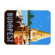 Budapester Magnet. Die Leute auf der Fischerbastelle schauen auf die Donau, mit der Stadt im Hintergrund. Reiseplakat auf einem Magneten.