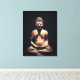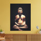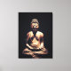Das Bild zeigt eine Bronzestatue von Buddha, sitzend in einer meditativen Pose mit Händen, die in seinem Schoß ruhen. Die Statue ist mit aufwändigen Details beschnitten, darunter ein ruhiger Ausdruck auf dem Gesicht und fließende Roben. Der Buddha ist in einem dunklen, fast schwarzen Hintergrund dargestellt, der die goldbraune Farbe der Statue unterstreicht.